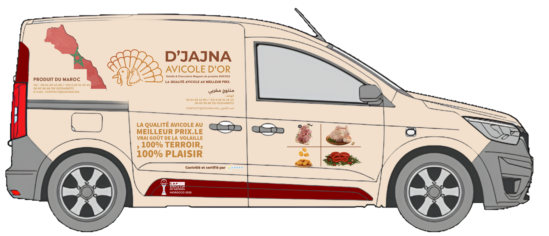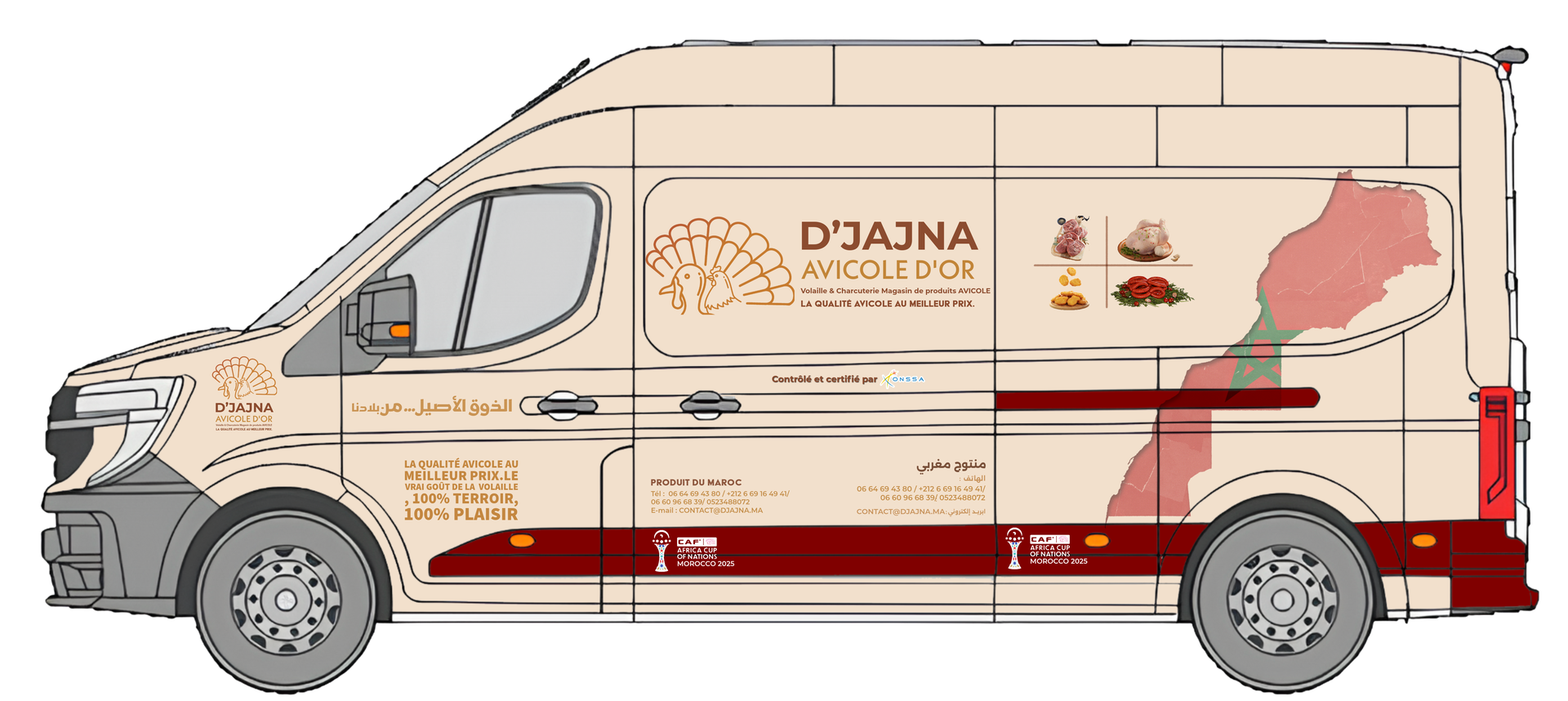 Implantés à Marrakech, grande métropole régionale, et à Fkih Ben Salah, cœur d’un territoire à forte identité agricole, les magasins D’JAJNA s’inscrivent dans une démarche de valorisation du produit local et de soutien à l’économie régionale. Cette double ouverture constitue le point de départ d’un réseau appelé à se développer, avec l’ambition de faire de D’JAJNA une référence nationale de la volaille de qualité.