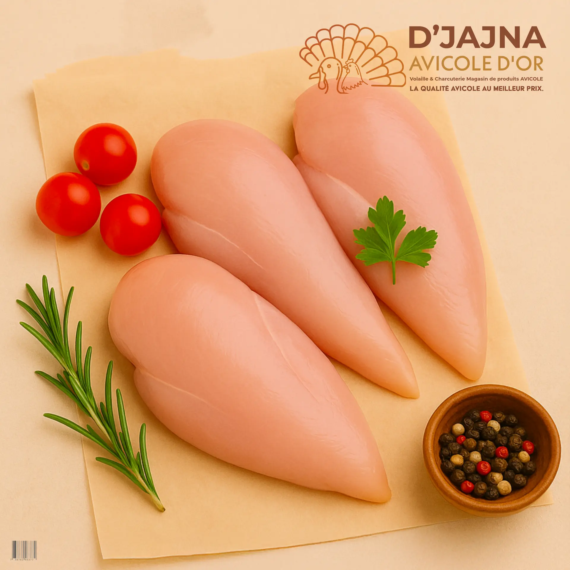 Volaille fraîche D’JAJNA, découpée et préparée quotidiennement pour garantir un goût authentique et une qualité constante.